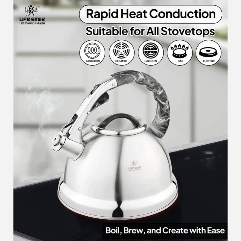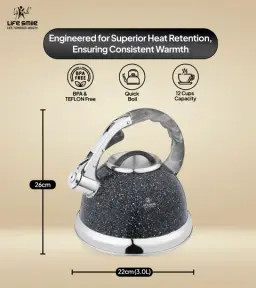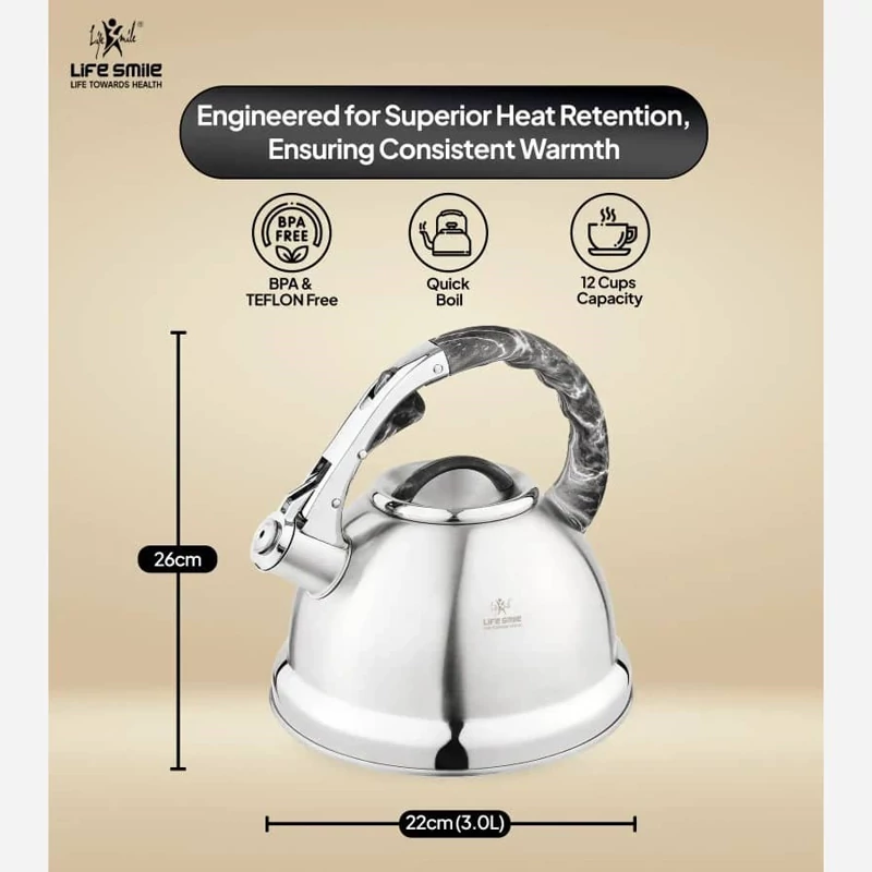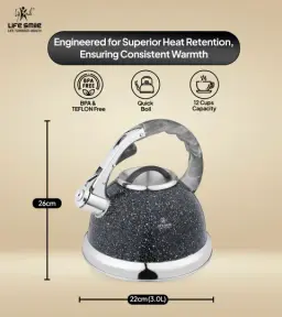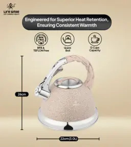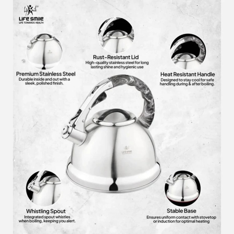 برند Life Smile یکی از معتبرترین برندهای ارائهکننده لوازم آشپزخانه در جهان است. ظروف آشپزخانه این برند ضمن داشتن طراحی فوقالعاده و رنگهای زیبا، نهایت کارآمدی را داشته ودارای طراحی تخصصی بوده بدین سبب انرژی حرارتی را هدر نمیدهد استفاده از بهترین پوششهای داخلی،کاربرد مستمر روزانه برای سالهای متمادی را تضمین میکند.کتری لایف اسمایل مدل TK3-3N یکپارچه تشکیل شده است که بصورت یکنواخت و سریع گرم می شود ، به نقطه جوش سریع دست پیدا می کند و دوام دارد. وقتی آب جوش می آید سوت مناسبی به صدا در می آید. دهانه بزرگ درب برای پر کردن و تمیز کردن راحت.طراحی دستگیره مقاوم در برابر حرارت مطابق با اصل ارگونومی است که در ایمنی و ضد سوزاندن نقش دارد . قابل استفاده روی شعله های هالوژنی ، سرامیکی ، الکتریکی و گاز -قابل شستشو در ماشین ظرفشویی -دارای کفی 5 لایه جهت استحکام بیشتر. جنس دسته : استیل سرامیک پوشش بدنه : نیکل-کروم جنس بدنه : استیل گنجایش : 3 لیتر