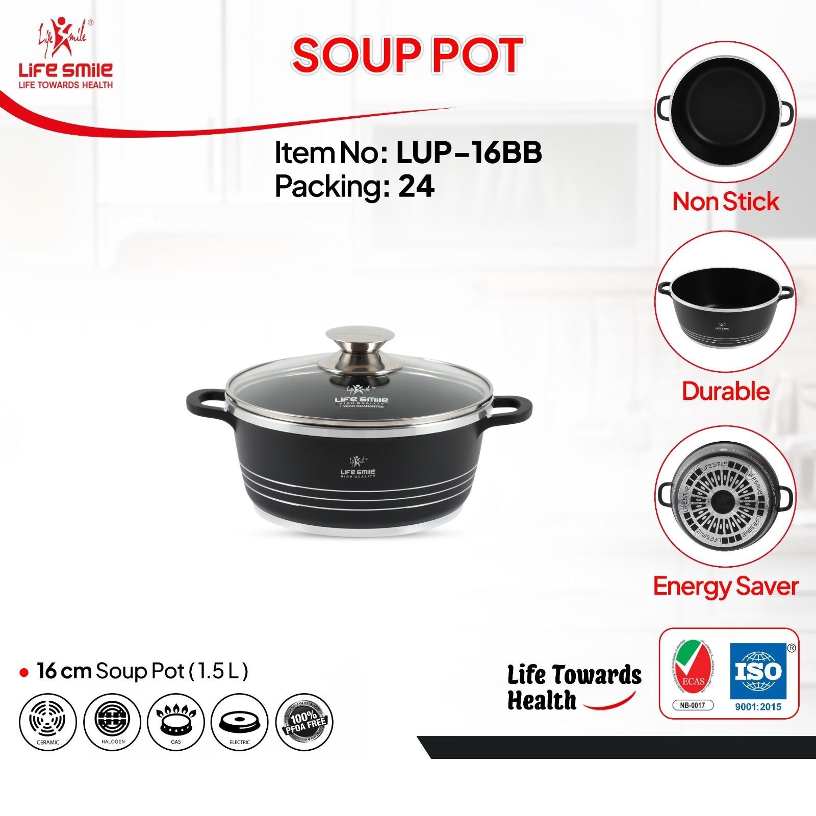 قابلمه Life Smile LUP-16BB یک قابلمه نچسب با طراحی مهندسیشده است که برای پخت انواع غذاهای خانگی با تمرکز بر سلامت، دوام و سهولت استفاده طراحی شده است. این محصول به پوشش نچسب چندلایه مجهز شده که امکان جدا شدن آسان غذا از سطح قابلمه را فراهم کرده و در عین حال دوام مناسبی در استفاده مداوم دارد.