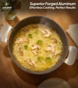 این مدل با **بدنه آلومینیومی فورج** (برای انتقال حرارت بهتر)، **کف القاپذیر** و **پوشش چندلایه پیشرفتهتر**، گزینهای **حرفهایتر** برای تمامی شعلههاست و با تعداد قطعات بیشتر، نیازهای پخت گستردهتری را پوشش میدهد.