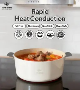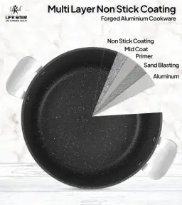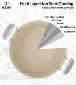 * **پوشش نچسب چندلایه گرانیتی:** مشابه مدل قبلی، اما در این مدل بر **چندلایه** بودن و ساختار **PTFE/PFOA Free** (بدون مواد مضر رایج) تأکید ویژه شده است.