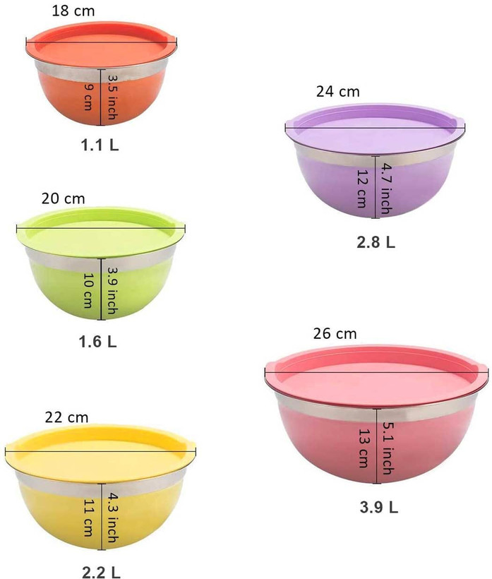 در میان ظروفی که در آشپزخانه به آن ها نیاز دارید، لگن استیل درب دار از جمله وسایلی است که کارایی زیادی دارد و به عنوان یک ظرف چند منظوره شناخته شده است. وجود انواع سبد و لگن در آشپزخانه مهمترین لوازمی است که بدون آن ها آشپزی مشکل می شود. ما پیشنهاد می کنیم با خرید ست لگن استیل 5 عددی چندین لگن در اندازه های مختلف داشته باشید. قطعا همه اجزای این ست برای شما کاربرد دارند. با خرید سرویس لگن استیل 5 تایی در واقع چند ظرف با کیفیت را با یک خرید در اختیار خواهید داشت. از این لگن ها برای شست و شوی مواد غذایی و سبزیجات و میوه ها، نگهداری مواد غذایی و… استفاده می شود پس گزینه مناسبی برای سفر نیز خواهد بود. لذت سرو کردن ترشی و ماست را در ست کاسه و پیاله جدید تجربه کنید. این ست کاسه درب دار شامل 5 عدد کاسه دوجداره با رنگ های شاد بوده که جنس داخل کاسه استیل شفاف و ضد زنگ و جنس جداره بیرونی کاسه از پلاستیک PP مقاوم می باشد. ست کاسه استیل دوجداره، قابل شستشو در ماشین ظرفشویی است. دارای کیفیت ساخت بالا، پکیج 5 تایی، مدل دو جداره، لایه داخلی استیل، طراحی چند وجهی ، جنس بدنه پلاستیک pp، تهیه شده از مواد کاملا بهداشتی، رنگ بندی بسیار زیبا و شفاف، مناسب برای استفاده به عنوان ظروف سرو ترشی، سالاد، ماست، و انواع دسر و پیش غذا می باشد. کاسه استیل رنگی 5 تایی دارای جنسی مقاوم، سبک و زیبا است که مناسب برای سرو پیش غذا، ترشی، سالاد و.. است. شما می توانید حتی از این ظروف رنگی برای سرو غذا به کودکان استفاده کنید. سرویس کاسه استیل 5 عددی، شیک ترین لوازم و به روز ترین ظروف را در آشپز خانه خود به کار گیرید و چیدمان آشپزخانه را اسپرت و زیبا تزیین کرده و با سلیقه ی زیبای خود همه را شگفت زده کنید. به خصوص شما عروس خانم های خوش سلیقه به جای استفاده از کاسه های ساده از زیبا ترین و اسپرت ترین آنها استفاده کنید. این ست کاسه رنگی شامل سایزهای 26 سانتی متری_24 سانتی متری_22 سانتی متری_20 سانتی متری_18 سانتی متری می باشد.